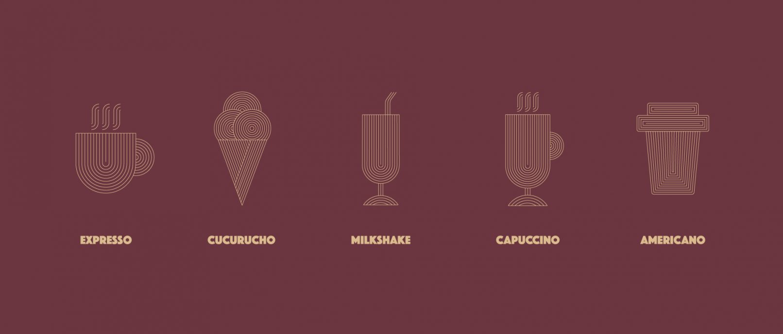 El sistema gráfico de Beltrán incluye una serie de pictogramas de utilidad para su comunicación, inspirados en las diferentes bebidas y helados que se pueden disfrutar en este lugar.