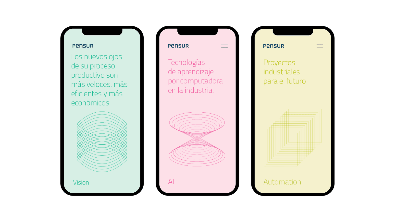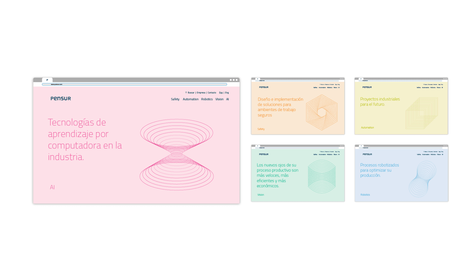 Pensur es una empresa de ingeniería electrónica. Iniciamos nuestro trabajo junto a ellos en 2014 cuando nos contactaron para rediseñar su identidad visual. En ese momento se rediseñaron sus símbolos identificadores y se generó un sistema gráfico que sostenía a este símbolo. En el año 2020 volvemos a trabajar junto a ellos, esta vez en la generación de nuevos elementos en su sistema gráfico. Estos cambios responden a una nueva organización de la empresa que buscaba clarificar sus servicios y alcances.